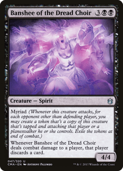 Myriad (Whenever this creature attacks, for each opponent other than defending player, you may create a token copy that's tapped and attacking that player or a planeswalker they control. Exile the tokens at end of combat.) Whenever this creature deals combat damage to a player, that player discards a card.