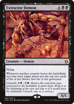 Flying Whenever another creature leaves the battlefield, you may have target player mill two cards. Unearth {2}{B} ({2}{B}: Return this card from your graveyard to the battlefield. It gains haste. Exile it at the beginning of the next end step or if it would leave the battlefield. Unearth only as a sorcery.)
