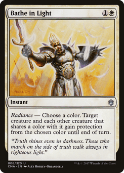 Radiance — Cleansing Beam deals 2 damage to target creature and each other creature that shares a color with it.