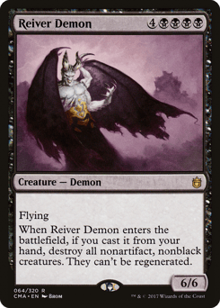 Flying When this creature enters, if you cast it from your hand, destroy all nonartifact, nonblack creatures. They can't be regenerated.