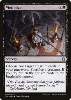 Choose two target creature cards in your graveyard. Sacrifice a creature. If you do, return the chosen cards to the battlefield tapped.