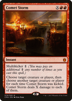 Multikicker {1} (You may pay an additional {1} any number of times as you cast this spell.) Choose any target, then choose another target for each time this spell was kicked. Comet Storm deals X damage to each of them.