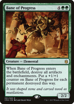 When this creature enters, destroy all artifacts and enchantments. Put a +1/+1 counter on this creature for each permanent destroyed this way.