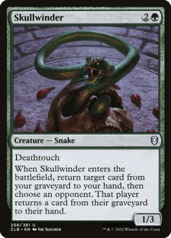 Deathtouch When this creature enters, return target card from your graveyard to your hand, then choose an opponent. That player returns a card from their graveyard to their hand.