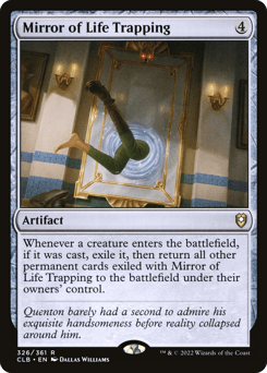Whenever a creature enters, if it was cast, exile it, then return all other permanent cards exiled with this artifact to the battlefield under their owners' control.