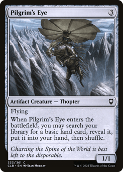 Flying When this creature enters, you may search your library for a basic land card, reveal it, put it into your hand, then shuffle.