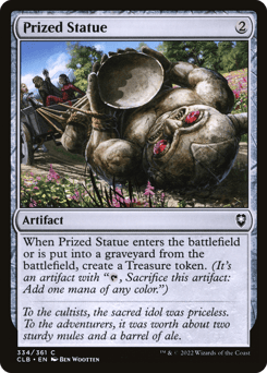 When this artifact enters or is put into a graveyard from the battlefield, create a Treasure token. (It's an artifact with "{T}, Sacrifice this token: Add one mana of any color.")