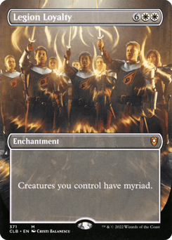Equipped creature has myriad. (Whenever it attacks, for each opponent other than defending player, you may create a token copy that's tapped and attacking that player or a planeswalker they control. Exile the tokens at end of combat.) Equip {4}