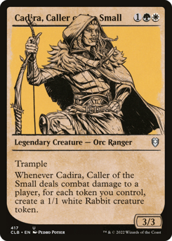 Trample Whenever Cadira deals combat damage to a player, for each token you control, create a 1/1 white Rabbit creature token.