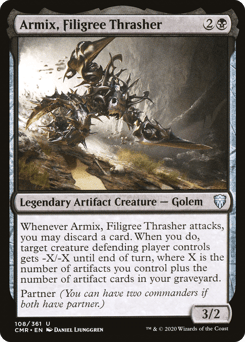 Artifacts you control have protection from each mana value among artifacts you control. Partner (You can have two commanders if both have partner.)
