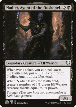 {T}, Tap X untapped artifacts you control: Look at the top X cards of your library. Put one of those cards into your hand and the rest into your graveyard. Partner (You can have two commanders if both have partner.)