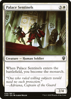 When this enchantment enters, you become the monarch. At the beginning of your upkeep, create a 1/1 white Spirit creature token with flying. If you're the monarch, create a 4/4 white Angel creature token with flying instead.