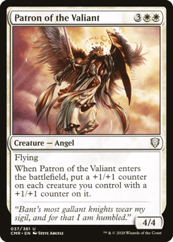 Flying When this creature enters, put a +1/+1 counter on each creature you control with a +1/+1 counter on it.