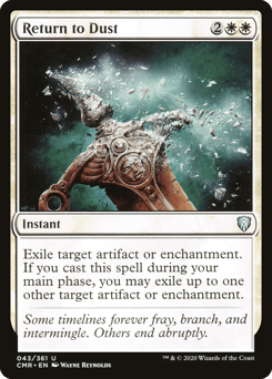 Exile target artifact or enchantment. If you cast this spell during your main phase, you may exile up to one other target artifact or enchantment.