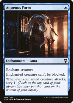 Enchant creature Enchanted creature can't be blocked. Whenever enchanted creature attacks, scry 1. (Look at the top card of your library. You may put that card on the bottom.)