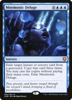 Exile target instant or sorcery card from a graveyard. Copy that card three times. You may cast the copies without paying their mana costs. Exile Mnemonic Deluge.