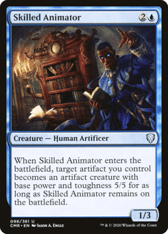 When this creature enters, target artifact you control becomes an artifact creature with base power and toughness 5/5 for as long as this creature remains on the battlefield.