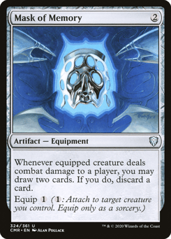Whenever equipped creature deals combat damage to a player, you may draw two cards. If you do, discard a card. Equip {1} ({1}: Attach to target creature you control. Equip only as a sorcery.)