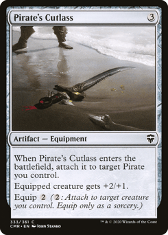 When this Equipment enters, attach it to target Pirate you control. Equipped creature gets +2/+1. Equip {2} ({2}: Attach to target creature you control. Equip only as a sorcery.)