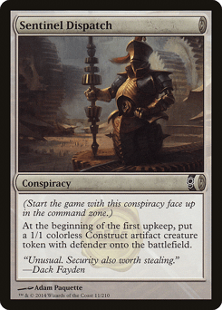(Start the game with this conspiracy face up in the command zone.) At the beginning of the first upkeep, create a 1/1 colorless Construct artifact creature token with defender.