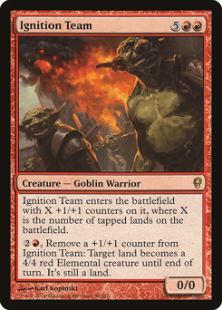 This creature enters with X +1/+1 counters on it, where X is the number of tapped lands on the battlefield. {2}{R}, Remove a +1/+1 counter from this creature: Target land becomes a 4/4 red Elemental creature until end of turn. It's still a land.