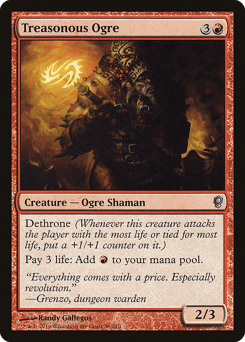 Dethrone (Whenever this creature attacks the player with the most life or tied for most life, put a +1/+1 counter on it.) Pay 3 life: Add {R}.