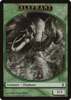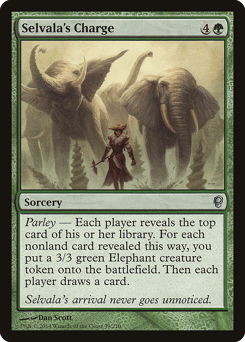 Parley — Each player reveals the top card of their library. For each nonland card revealed this way, you create a 3/3 green Elephant creature token. Then each player draws a card.