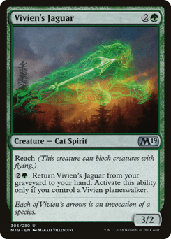 Reach (This creature can block creatures with flying.) {2}{G}: Return this card from your graveyard to your hand. Activate only if you control a Vivien planeswalker.