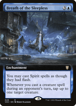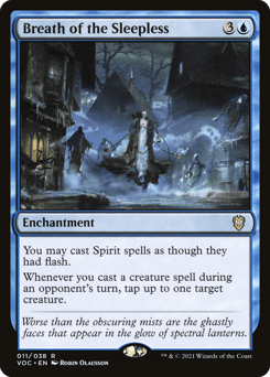 You may cast Spirit spells as though they had flash. Whenever you cast a creature spell during an opponent's turn, tap up to one target creature.
