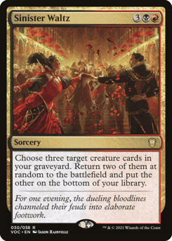 Choose three target creature cards in your graveyard. Return two of them at random to the battlefield and put the other on the bottom of your library.