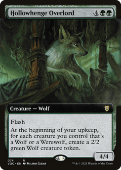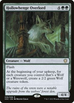 Flash At the beginning of your upkeep, for each creature you control that's a Wolf or a Werewolf, create a 2/2 green Wolf creature token.