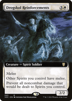 Melee (Whenever this creature attacks, it gets +1/+1 until end of turn for each opponent you attacked this combat.) Other Spirits you control have melee. Prevent all noncombat damage that would be dealt to Spirits you control.