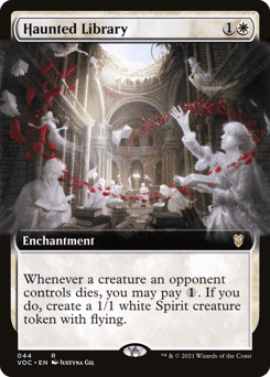 Whenever a creature an opponent controls dies, you may pay {1}. If you do, create a 1/1 white Spirit creature token with flying.