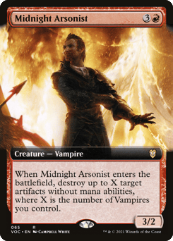 When this creature enters, destroy up to X target artifacts without mana abilities, where X is the number of Vampires you control.