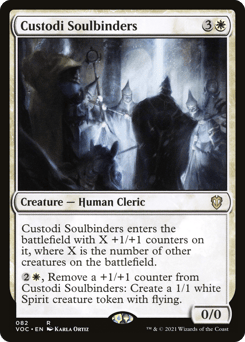 This creature enters with X +1/+1 counters on it, where X is the number of other creatures on the battlefield. {2}{W}, Remove a +1/+1 counter from this creature: Create a 1/1 white Spirit creature token with flying.