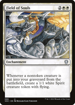 Vigilance When this creature dies, create X 1/1 white Spirit creature tokens with flying, where X is the number of creature cards in your graveyard.