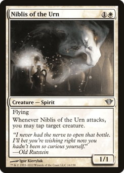 Flying Whenever another non-Spirit creature you control dies, create a 1/1 white Spirit creature token with flying.