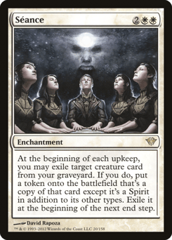 At the beginning of each upkeep, you may exile target creature card from your graveyard. If you do, create a token that's a copy of that card, except it's a Spirit in addition to its other types. Exile it at the beginning of the next end step.