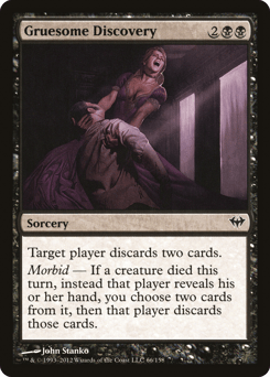 Target player discards two cards. Morbid — If a creature died this turn, instead that player reveals their hand, you choose two cards from it, then that player discards those cards.
