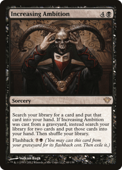 Search your library for a card and put that card into your hand. If this spell was cast from a graveyard, instead search your library for two cards and put those cards into your hand. Then shuffle. Flashback {7}{B} (You may cast this card from your graveyard for its flashback cost. Then exile it.)