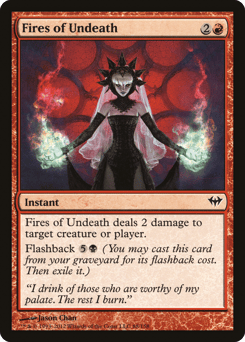 Fires of Undeath deals 2 damage to any target. Flashback {5}{B} (You may cast this card from your graveyard for its flashback cost. Then exile it.)