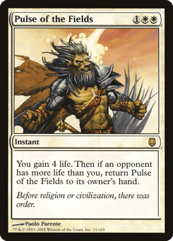 You gain 4 life. Then if an opponent has more life than you, return Pulse of the Fields to its owner's hand.
