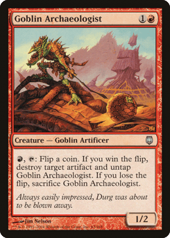 {R}, {T}: Flip a coin. If you win the flip, destroy target artifact and untap this creature. If you lose the flip, sacrifice this creature.
