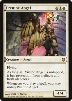 Flying As long as this creature is untapped, it has protection from artifacts and from each color. Whenever you cast a spell, you may untap this creature.