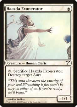 {T}, Sacrifice this creature: Destroy target Aura.