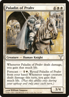 Whenever this creature deals damage, you gain that much life. Forecast — {1}{W}, Reveal this card from your hand: Whenever target creature deals damage this turn, you gain that much life. (Activate only during your upkeep and only once each turn.)