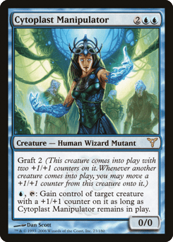 Graft 2 (This creature enters with two +1/+1 counters on it. Whenever another creature enters, you may move a +1/+1 counter from this creature onto it.) {U}, {T}: Gain control of target creature with a +1/+1 counter on it for as long as this creature remains on the battlefield.
