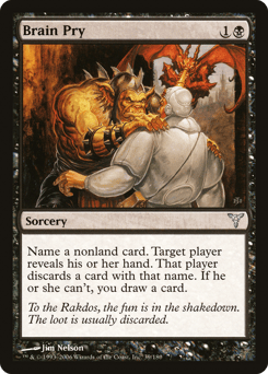Choose a nonland card name. Target player reveals their hand. That player discards a card with that name. If they can't, you draw a card.