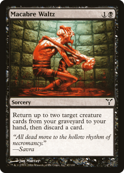 Return up to two target creature cards from your graveyard to your hand, then discard a card.