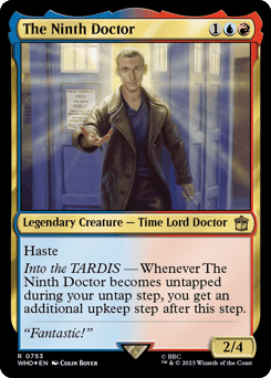 Haste Into the TARDIS — Whenever The Ninth Doctor becomes untapped during your untap step, you get an additional upkeep step after this step.
